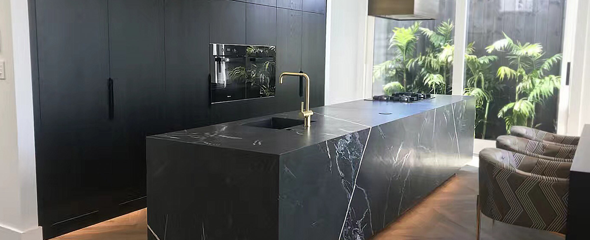 The natural choice for a kitchen benchtop. The classic black granite benchtop goes well with all kinds of interiors. A kitchen bench top is possibly one of the most important functional and designer elements of your kitchen. Your benchtop is on view for all your guests to see; Compliment your kitchen by featuring a marquee laminate bench top.